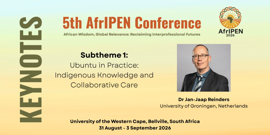 We are pleased to announce our first keynote speaker, Dr Jan Jaap Reiders, who will contribute to Subtheme 1: Ubuntu in Practice – Indigenous Knowledge and Collaborative Care.