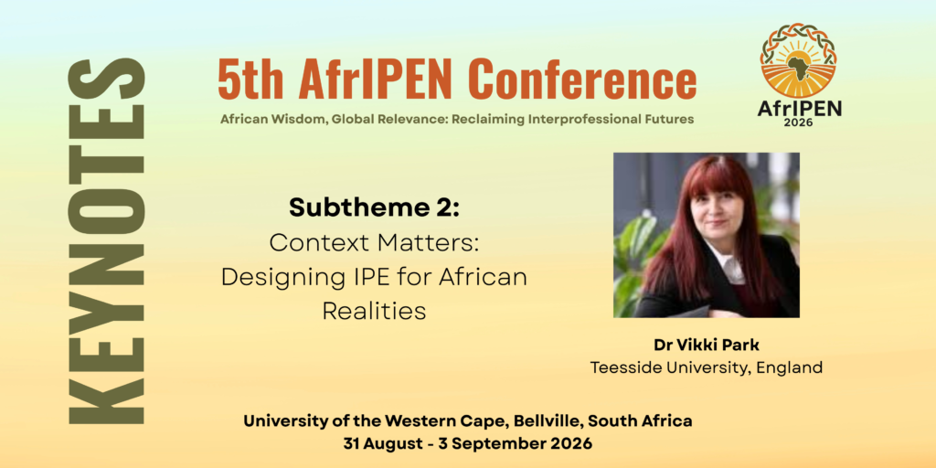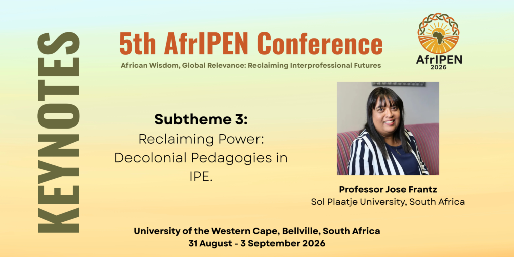Guided by the philosophy of Ubuntu, her keynote positions intentional inclusion as both an educational commitment and an ethical imperative. By emphasising shared humanity and interconnectedness, this approach aligns with AfrIPEN’s vision of contextually grounded, culturally meaningful interprofessional learning that honours African values and lived experiences.